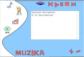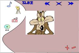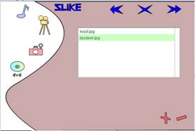 Opcijama “+“ i “-“ dodajemo i uklanjamo fajlove iz liste. Za audio i video fajlove imamo opcije play, pause, stop, rewind i next. Strelice prema gore i dole omogućavaju pojačavanje, odnosno smanjivanje tona. Za slike opcija X omogućava pregled slike, a ista opcija uklanja otvorenu sliku i vraća sliku na gore prikazani ekran. Kod opcije za reprodukovanje DVD-ova bitno je samo pravilno unijeti slovo drive-a sa koga se učitava DVD. Ostalo radi naš program.