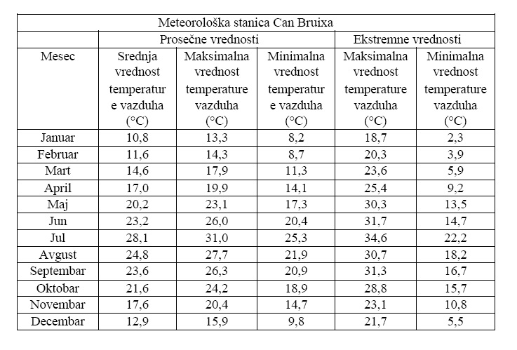 Tabela 1 - Vrednost temperature vazduha po mesecima