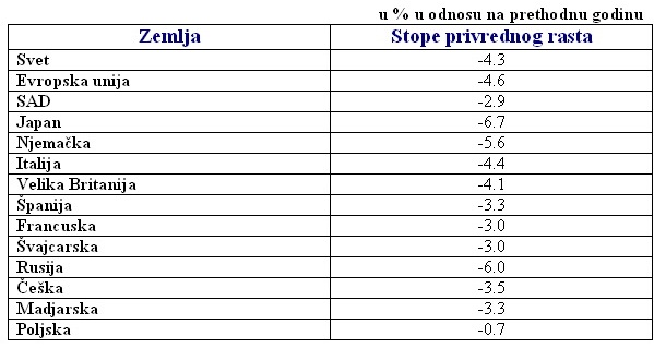 TABELA I Prognoze stopa privrednog rasta u 2009. godini u izabranim zemljama