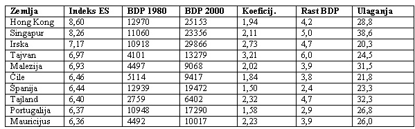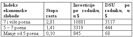 Tabela 3. Ekonomske slobode, BDP, rast i ulaganja