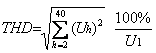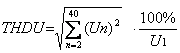 2.1. Merenje ukupnog harmonijskog izobličenja naponaZa izračunavanje THD U koriste se izmerene (RMS) vrednosti svakog od prvih 40 harmonika (Un) i vrednost nazivnog napona (osnovni harmonik), koja prema normi EN 50160 iznosi npr.: U1 = 220 V, a prema jednačini: Pomnoženo s 100%, THD U % ne sme biti veće od 8% vrednosti nazivnog napona. Ta jednačina u skladu je sa normom EN 61000-4-7. 2.2. Izračunavanje ukupnoga harmonijskog izobličenja napona i strujeZa izračunavanje THD U i THD I, primenjuju se sledeće jednačine: