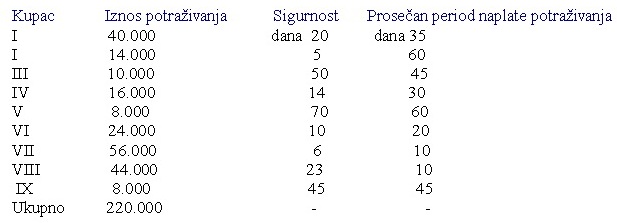 i rok dospeca kredita na naplatu od 90 dana. Preduzece ’’Buducnost’’