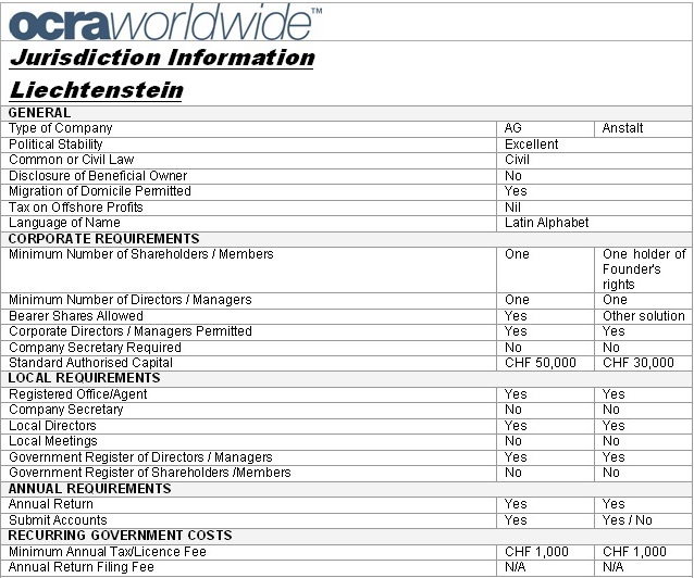 statusnim oblicima off shore kompanija.U Linhenštajnu sve kompanije sa