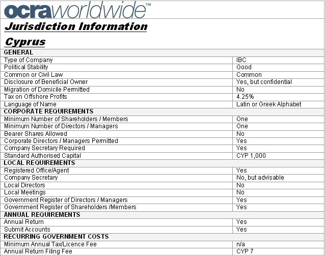Cyprus IBC Companies are taxed at a rate of 4.25%.