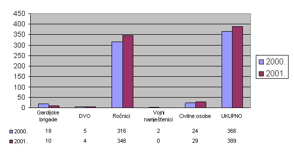 tijekom 2001. evidentirano 166 kao počinitelja, ili 46,11% od ukupnog