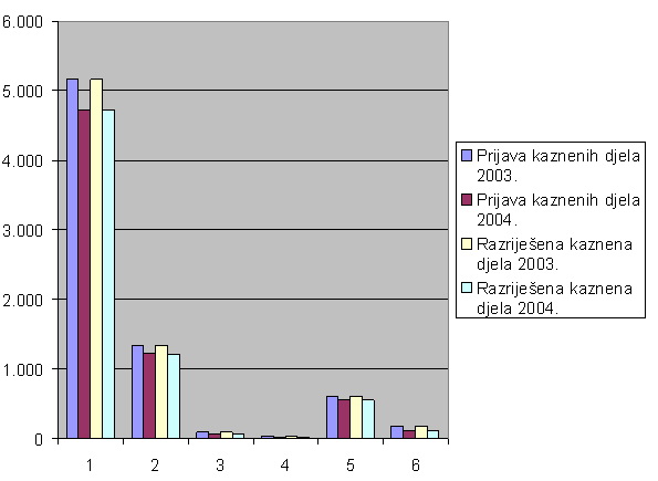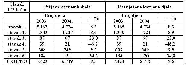 32 kaznena djela ili 8,8% od ukupnog broja, dok je najmanje kaznenih djela