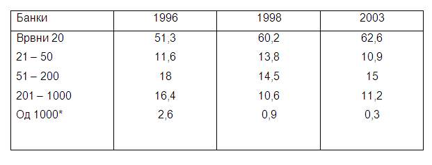 1999 и 2003 година банкарски главнини, банкарскиот кредит од економијата