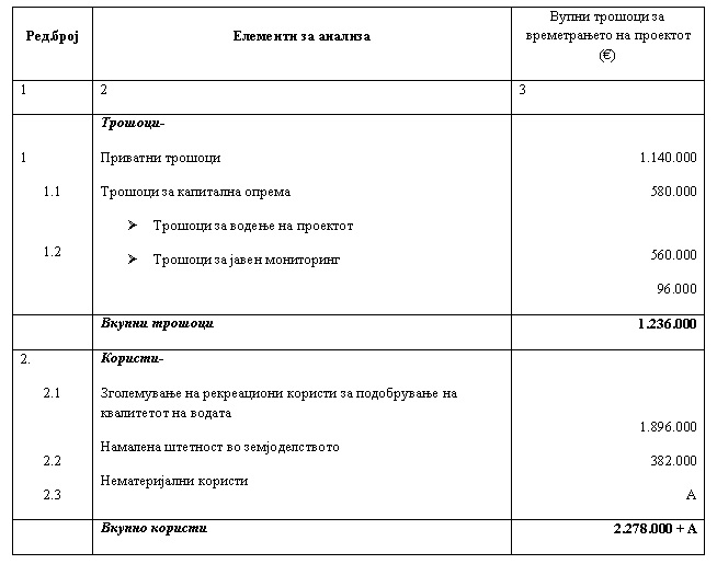 на проектот во однос на еколошките цели . Кост бенефит анализата