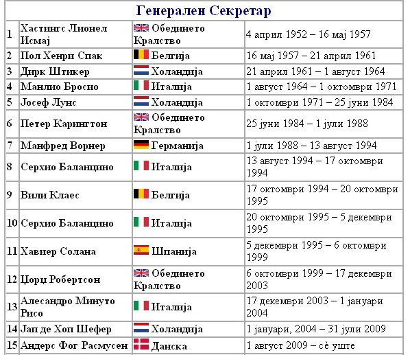 политичка асоцијација. Првиот генерален секретар на НАТО е Хастингс
