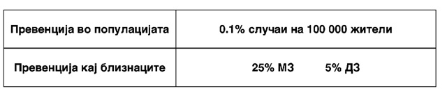 Табела 1: Превенција на MC кај роднини
