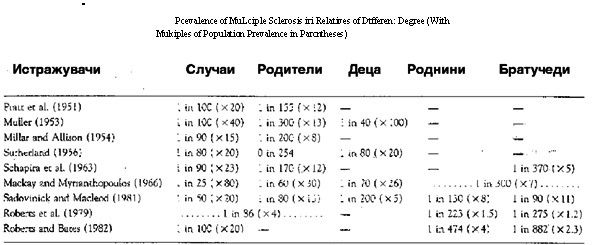 на МС кај фамилиите. Предиспонирачките гени изгледа дека се од